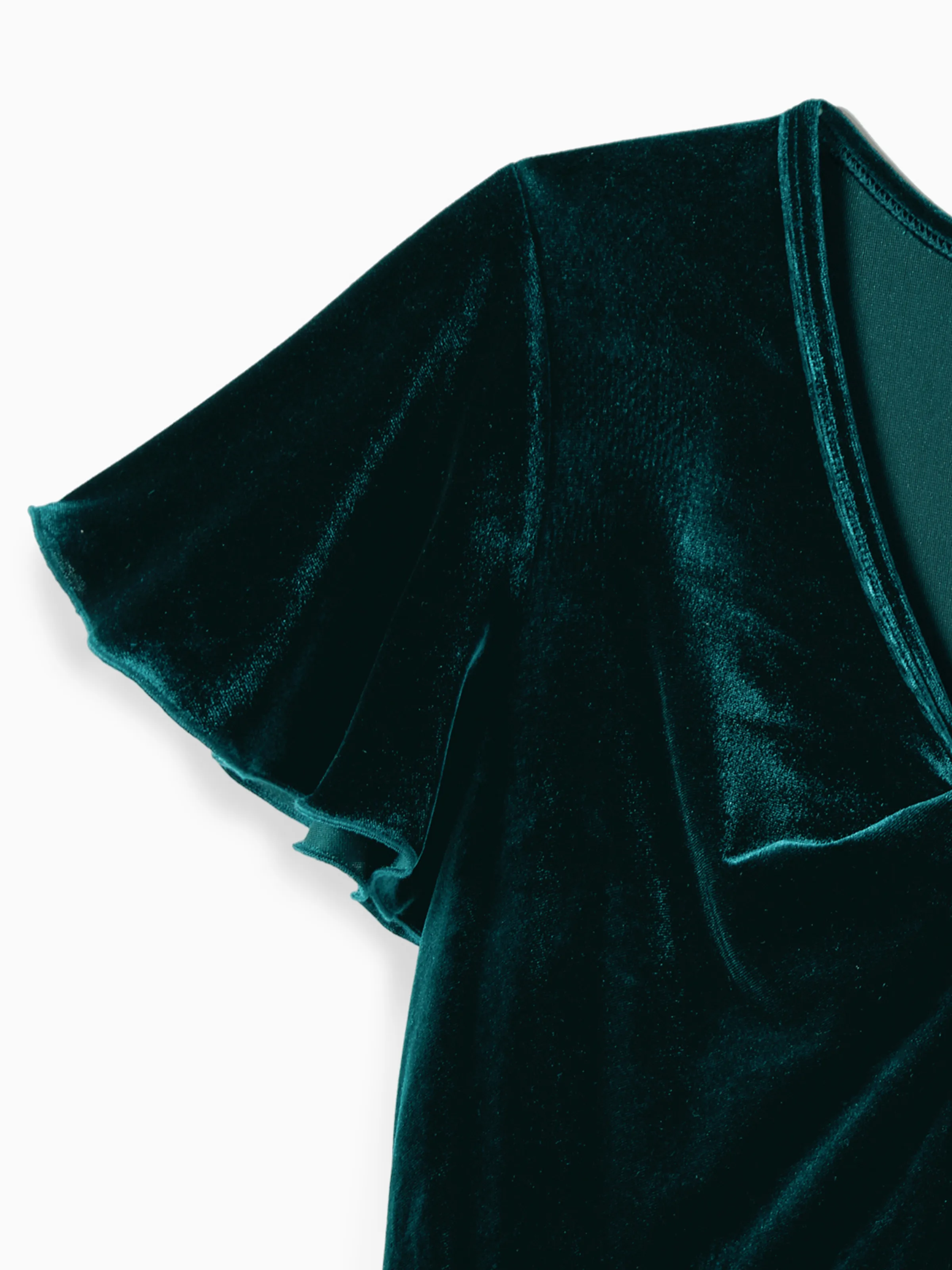 Velvet and embroidered mesh fabric, with a composition ratio of mom+deep green - upper body: 95% polyester, 5% spandex; lower body: 100% nylon, 100% polyester; lining: 100% polyester. Girls+deep green/baby girls+deep green - upper body: 95% polyester, 5% spandex; lower body: 100% nylon, 100% polyester; lining: 100% polyester.
